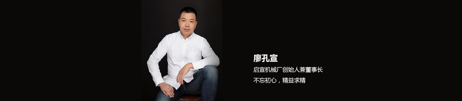 - 廖孔宣-瑞安市啟宣機械有限公司創(chuàng)始人兼董事長。 1989年在溫州梧田撕裂膜廠做工,2005年自己創(chuàng)辦了鵬博機械廠,誠信經營,不忘初心,精益求精。之后機械廠正式改名瑞安市啟宣機械有限公司。